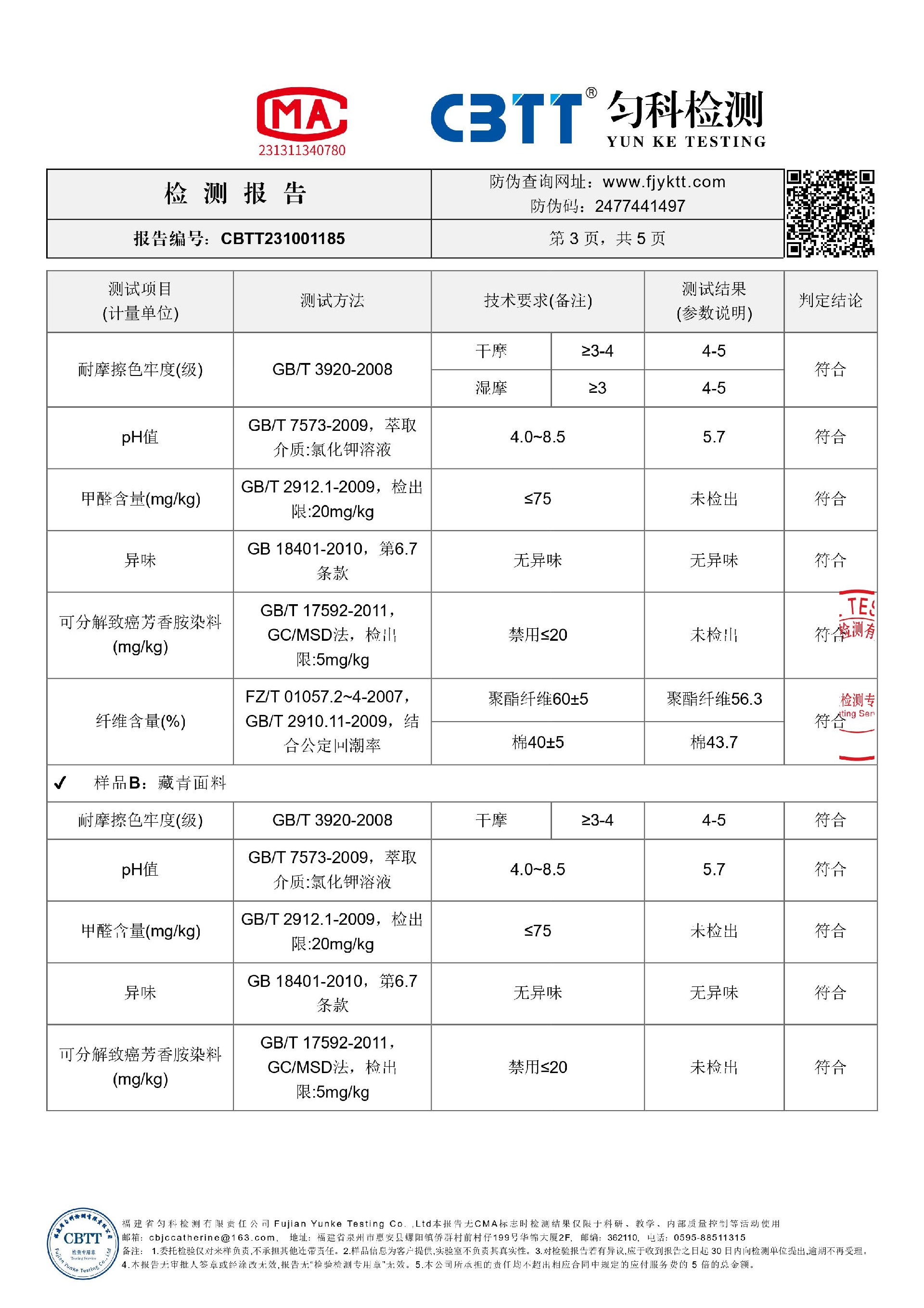 GB 18401-2010《国家纺织产品基本安全技术规范》B类