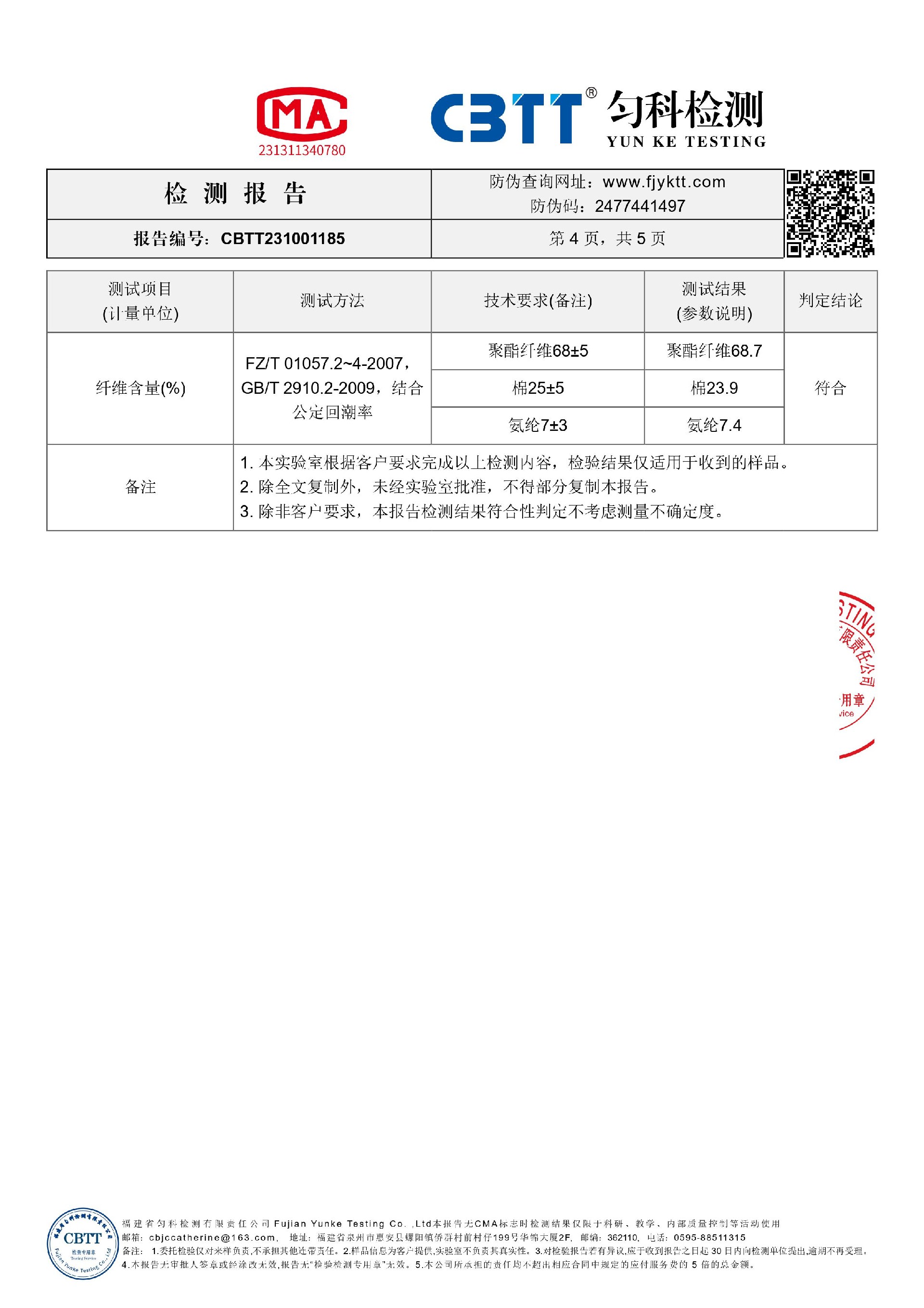 裤子 69%聚酯纤维 24%棉 7%氨纶