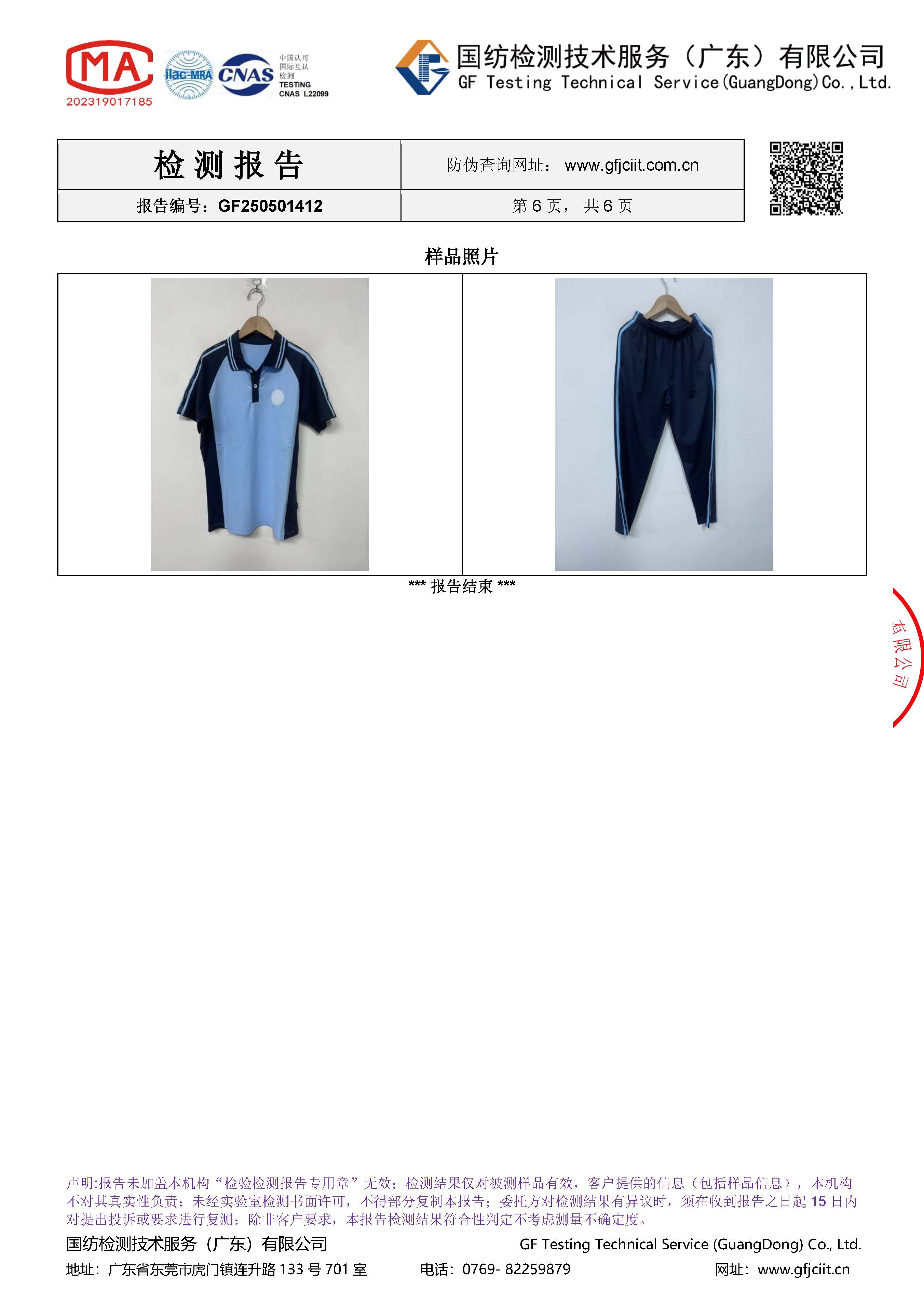 受检服装产品名称:南圩镇初级中学-夏装校服